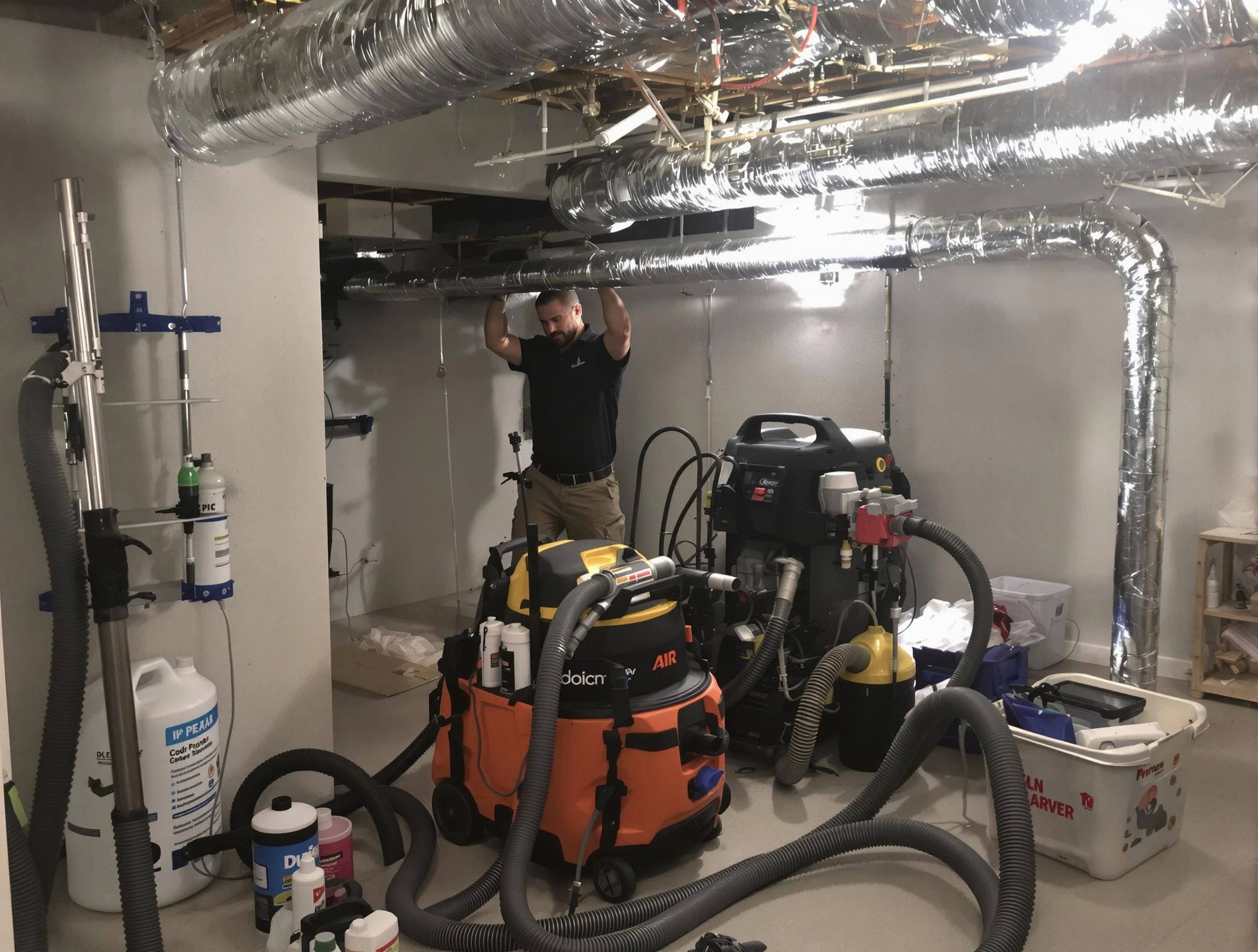 Washington Air Duct Cleaning specialist performing professional mold removal from air ducts in Washington