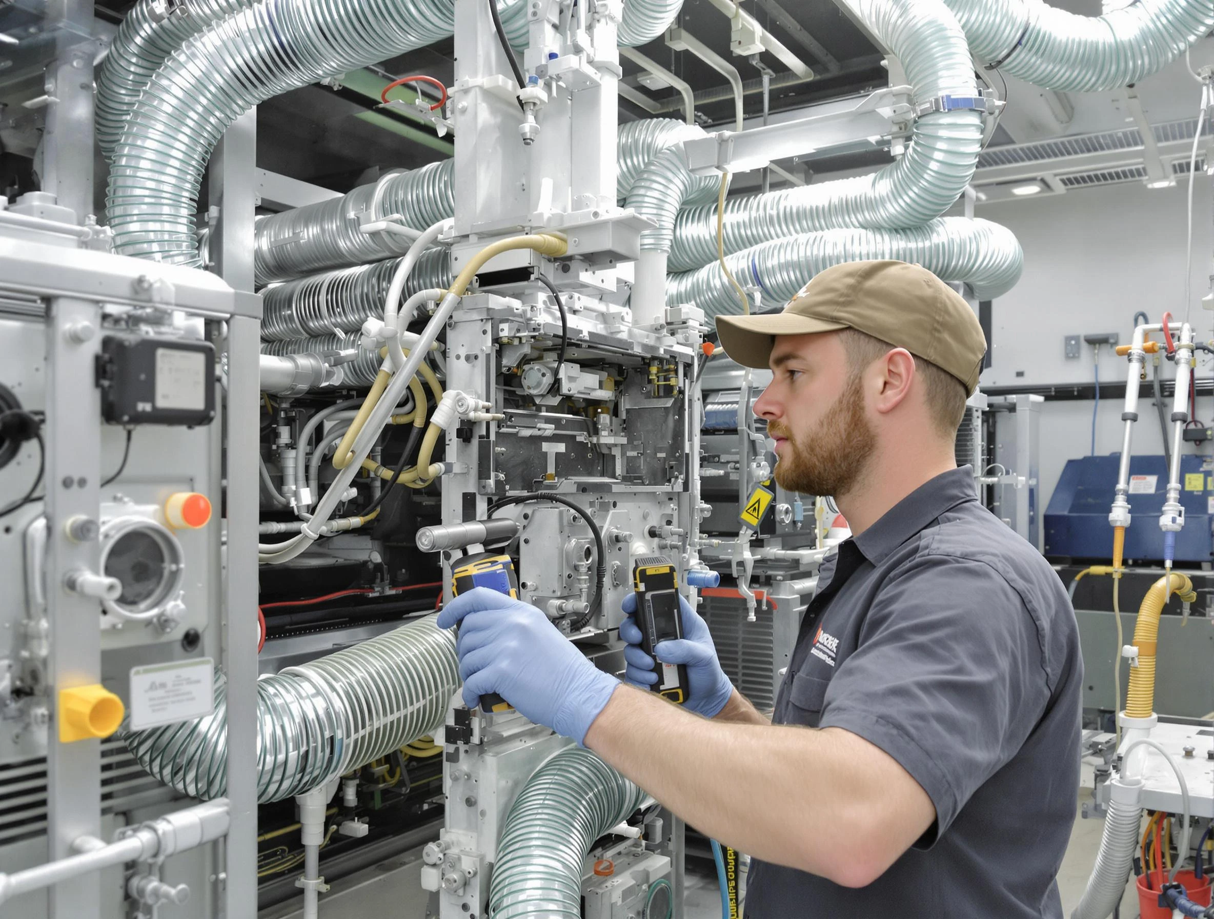 Washington Air Duct Cleaning technician performing precision commercial coil cleaning at a business facility in Washington